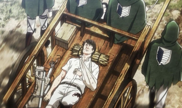 三名主角的個性在對話安排與聲優的優秀詮釋下也將基礎特徵表現出來,不論是艾連的熱血與眼視前方的堅強意志,米卡莎沉默但不可忽視的氣場或是阿爾敏知性但對弱小的自己不滿的氣質都在幾個運鏡轉化間很好的傳達出來,還原度頗高。